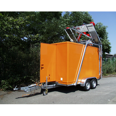 npr. tudi v manjši različici (FA2), z nosilcem prometnih stožcev, radijski prenos podatkov v standardnem dosegu DECT do 300 m, pritrdilni sistem v notranjosti na desni, sredini in levi v dnu zabojnika, vključno z drsnimi bloki, zadnja stena zabojnika po celotni širini in višini se zloži kot dovozna rampa, ali, ali, ali, ali....