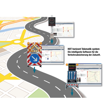 Sistem za lokalizacijo GPS, nadzor mobilnih prometnih prikolic ter nadzor in upravljanje vnaprejšnjih opozorilnih znakov in samostojnih znakov. HOT-Box vključno z namestitvijo ex works za nove nakupe ter demonstracijo, registracijo in prijavo mobilnih opozorilnih znakov družbi Hessen Mobil.
