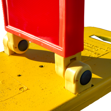 - Optimalna vidljivost podnevi zaradi telesa svetilnika v fluorescentno oranžni barvi in osnovne plošče v fluorescentno rumeni barvi.