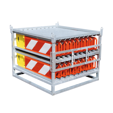 Praktična transportna in skladiščna paleta omogoča še lažje rokovanje in logistiko zložljivih stojal za svetilnike ali stojal za znake Vario. Zaradi stranskega odpiranja lahko paleta ostane na nakladalni površini tovornjaka, pri odprti spusti pa jo lahko udobno naloži in razloži ena oseba.