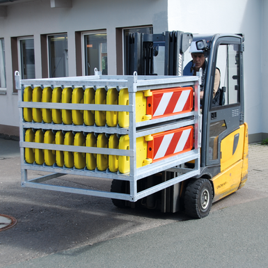 Za prevoz in shranjevanje do 20 zložljivih svetilnikov ali stojal za znake Vario, za bočno odstranitev