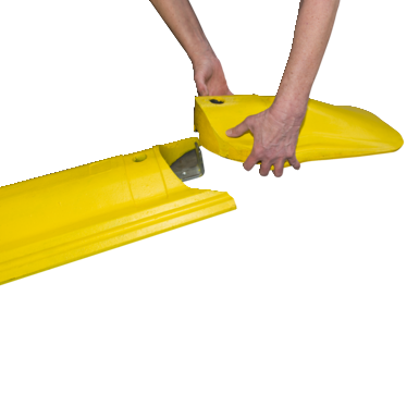 Poševni končni del B za hitrostne ovire v rumeni barvi vsebuje zaporni vijak. Izdelan je iz recikliranega materiala, prav tako kot hitrostna ovira, in je opremljen s sistemom proti zdrsu ARS.