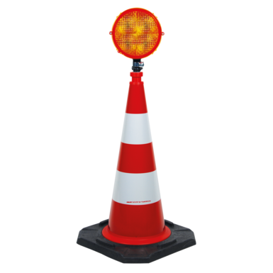 Zmogljiva utripajoča luč LED za prometne stožce je opremljena s 4 visoko zmogljivimi LED diodami. Za hitro in enostavno namestitev na standardne prometne stožce TL 750 mm. Napajalna enota v prometnem stožcu za 4 blok baterije, ki je s trdno stojno cevjo povezana z ohišjem svetilke. Hitra pritrditev s krilno matico. Enostavna zamenjava baterij z "odpiračem sponk" na napajalnem delu.