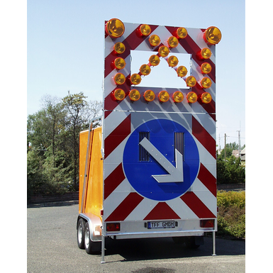 Mobilna zaporna plošča FA1, nameščena za prikolico.