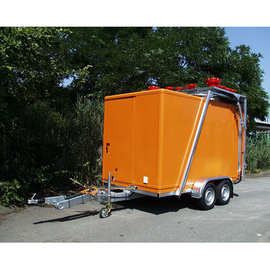 npr. tudi v manjši različici (FA2), z nosilcem prometnih stožcev, radijski prenos podatkov v standardnem dosegu DECT do 300 m, pritrdilni sistem v notranjosti na desni, sredini in levi v dnu zabojnika, vključno z drsnimi bloki, zadnja stena zabojnika po celotni širini in višini se zloži kot dovozna rampa, ali, ali, ali, ali....