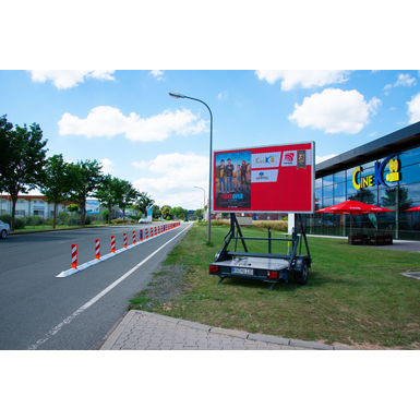 Naše mobilne rešitve za digitalno označevanje so izdelane po meri v Nemčiji. Izberete velikost zaslona, gostoto pikslov, konstrukcijo prikolice, barvo in možnosti prikazovanja.