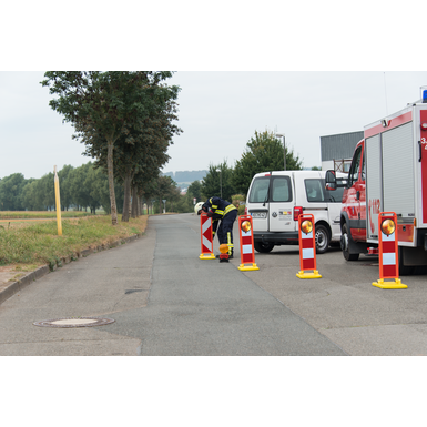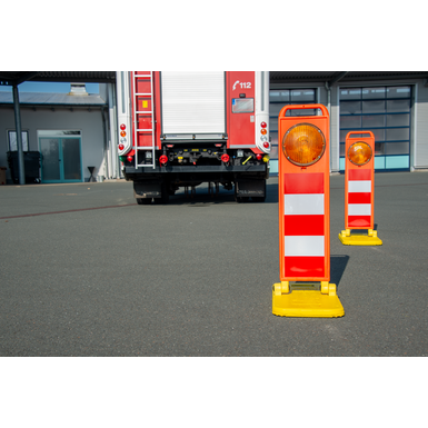Ti zložljivi svetilniki niso opisani v RSA, temveč le prometni stožec (750) in utripajoči svetilnik. Vendar pa ti na splošno NIMAJO fiksne povezave in lahko zato v določenih okoliščinah prav tako predstavljajo nevarnost za udeležence v prometu/delavce. To ne velja za ta zložljivi svetilnik, ki se ob dotiku običajno preprosto zloži in nobena luč ne more "odleteti". Odsevne vrednosti (folija tipa RA2) so 98 % vrednosti prometnega stožca.