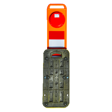 - Optimalna vidljivost podnevi zaradi telesa svetilnika v fluorescentno oranžni barvi in osnovne plošče v fluorescentno rumeni barvi.