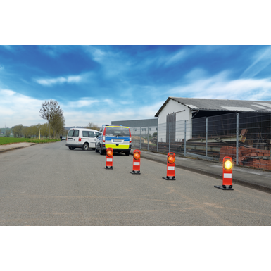 Naša naprava FlashMax je varna, hitra in prostorsko varčna zaščita na nevarnih območjih, primerna za vse reševalne službe, kot sta policija ali gasilci. Opomba: Vodenje prometa za gasilce ni dovoljeno v vseh zveznih državah!