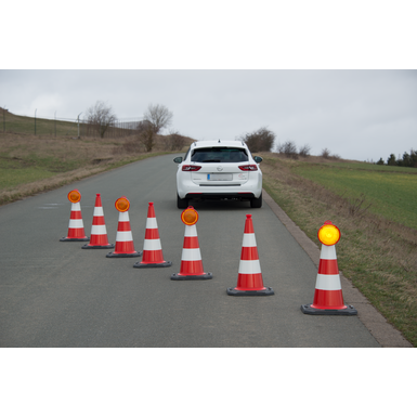 Če jo preprosto namestite na prometni stožec, se ob stiku aktivira in oddaja enakomerno utripajočo svetlobo LED, ki prihajajoča vozila opozarja na nevarne razmere.