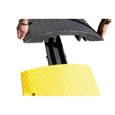 Modularni sistem za zaščito izpostavljenih kablov in manjših cevi, ki jih je treba prečkati na gradbiščih.